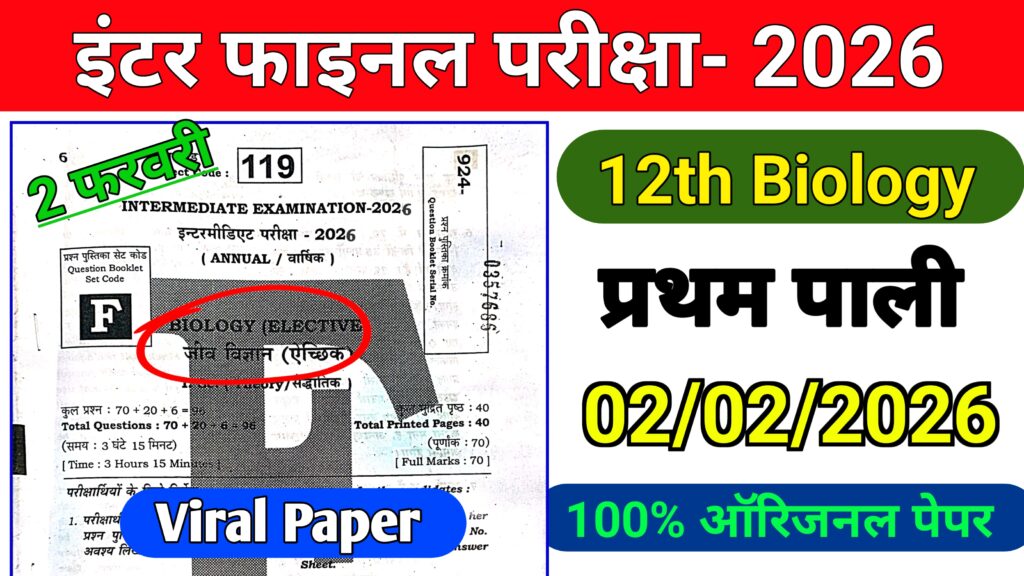 Bihar Board 2 February 12th Biology Viral Paper 2026 Download: कक्षा 12वीं ऑरिजनल पेपर वायरल 2026